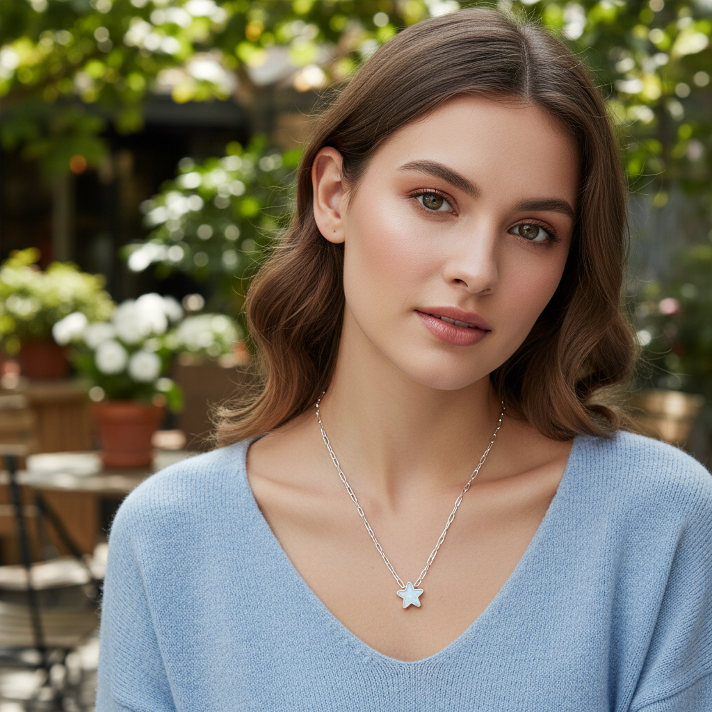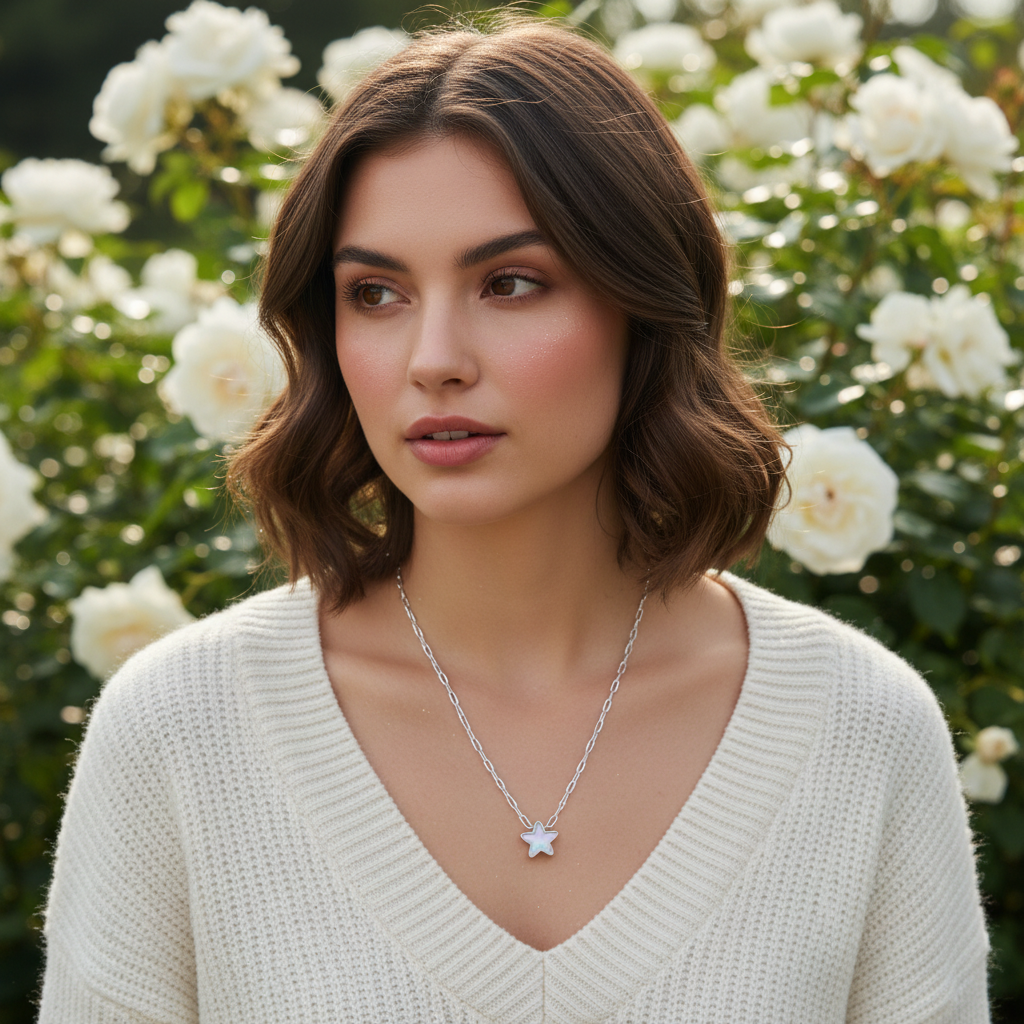 Star Of My Life Necklace - Metallic Pearl White Snow
